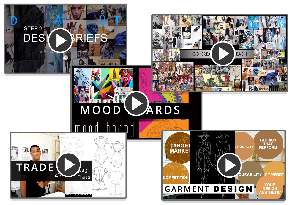 4 Fashion design briefs are created especially for this program - to take you through step by step in video format and visual format. The design briefs go from a single design to a small range to a large collection - so you can easily understand how to design and present these designs for approval or 'production ready !'